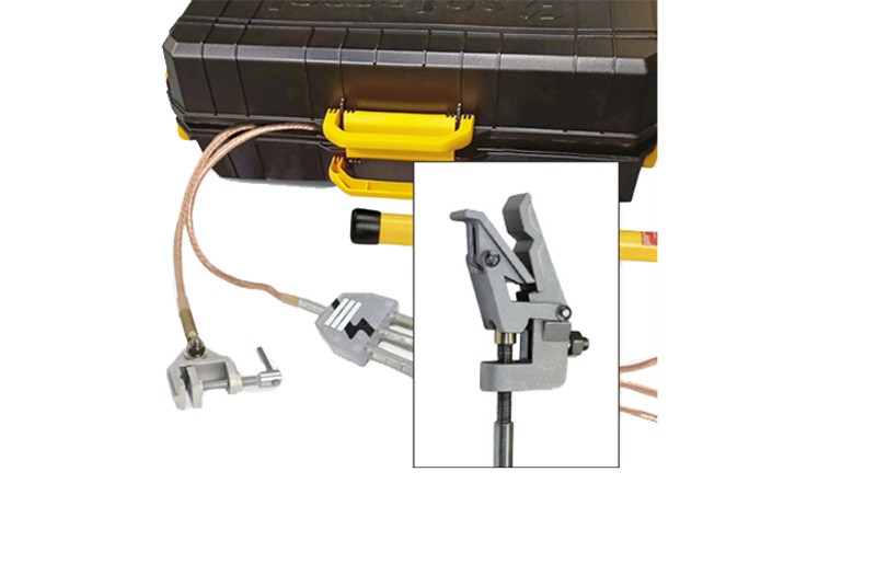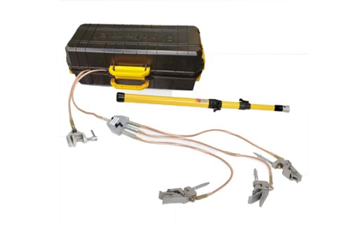 Equipo de puesta a tierra y cortocircuito para subestaciones. El objetivo principal de su instalación es la protección del trabajador ante la puesta en funcionamiento accidental o un posible retorno de tensión durante los trabajos de reparación. La pinza PP-15 es adecuada para instalaciones con pletinas colocadas en posición horizontal o vertical.