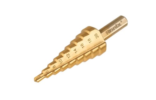 La broca escalonada Ronix RH-5901 permite perforar múltiples diámetros usando una sola herramienta, optimizando tiempo y eficiencia en cada trabajo. Su diseño de doble canal asegura una perforación limpia y rápida en láminas de acero, acero inoxidable, cobre y aluminio.
