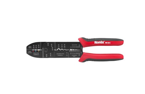 El alicate crimpador Ronix RH-1811 es una herramienta multifunción diseñada para ofrecer rendimiento profesional en tareas de crimpado, corte y pelado de cables. Fabricado en acero de alta resistencia 50# y sometido a un proceso de tratamiento térmico completo, garantiza una durabilidad superior y una dureza de HRC 42–48, ideal para trabajos eléctricos exigentes.