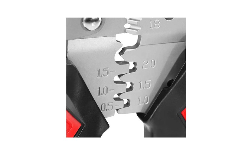 Este modelo permite pelar cables hasta Ø 2.0 mm, cortar cables y alambres hasta Ø 16 mm, y crimpar terminales hasta 2.0 mm², convirtiéndose en una herramienta indispensable para labores de electricidad, montaje de componentes, reparación electrónica y tareas de mantenimiento.
