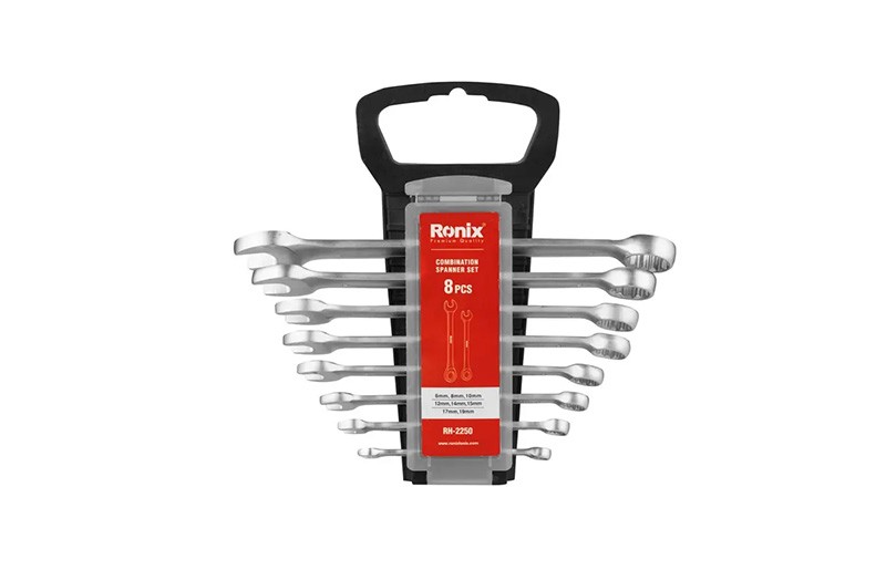 El juego de llaves combinadas Ronix RH-2250 es una solución esencial tanto para profesionales como para usuarios domésticos. Diseñado para cubrir una amplia variedad de tareas de ajuste y aflojado de pernos, tuercas y tornillos, este set incluye 8 tamaños fundamentales para trabajos mecánicos, eléctricos, de mantenimiento y reparaciones generales.