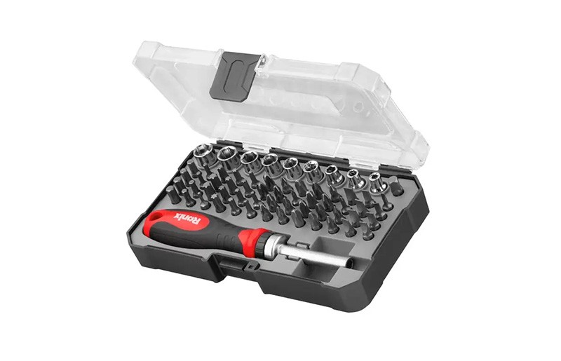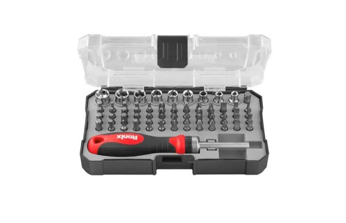 El set de destornilladores Ronix RH-2716 reúne 64 piezas entre puntas, conectores y mango de matraca, diseñado para cubrir las necesidades de usuarios profesionales y domésticos. Es ideal para reparación de computadores, celulares, relojes, electrónica, ensamblaje de componentes y trabajos de precisión.
