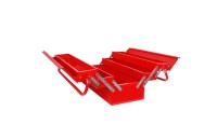 Sus tres niveles de almacenamiento permiten distribuir fácilmente llaves, alicates, martillos, tornillos y otros accesorios, manteniendo todo ordenado y accesible. Gracias a sus asas reforzadas y su diseño ergonómico, la caja es fácil de mover incluso cuando está completamente cargada.