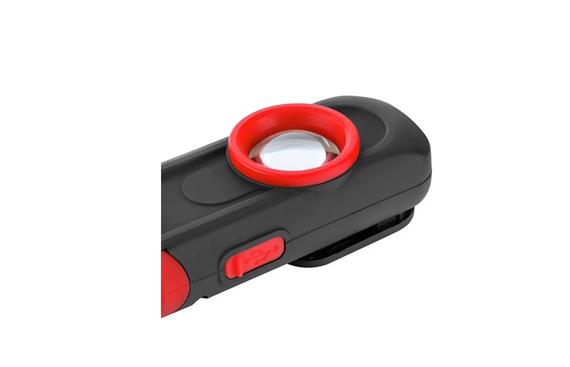 Su base magnética permite fijarla en superficies metálicas para trabajar con las manos libres, mientras que su clip de ropa facilita llevarla en el cinturón o el bolsillo. Además, es resistente al agua y a los golpes, lo que la convierte en una opción confiable incluso en condiciones exigentes.